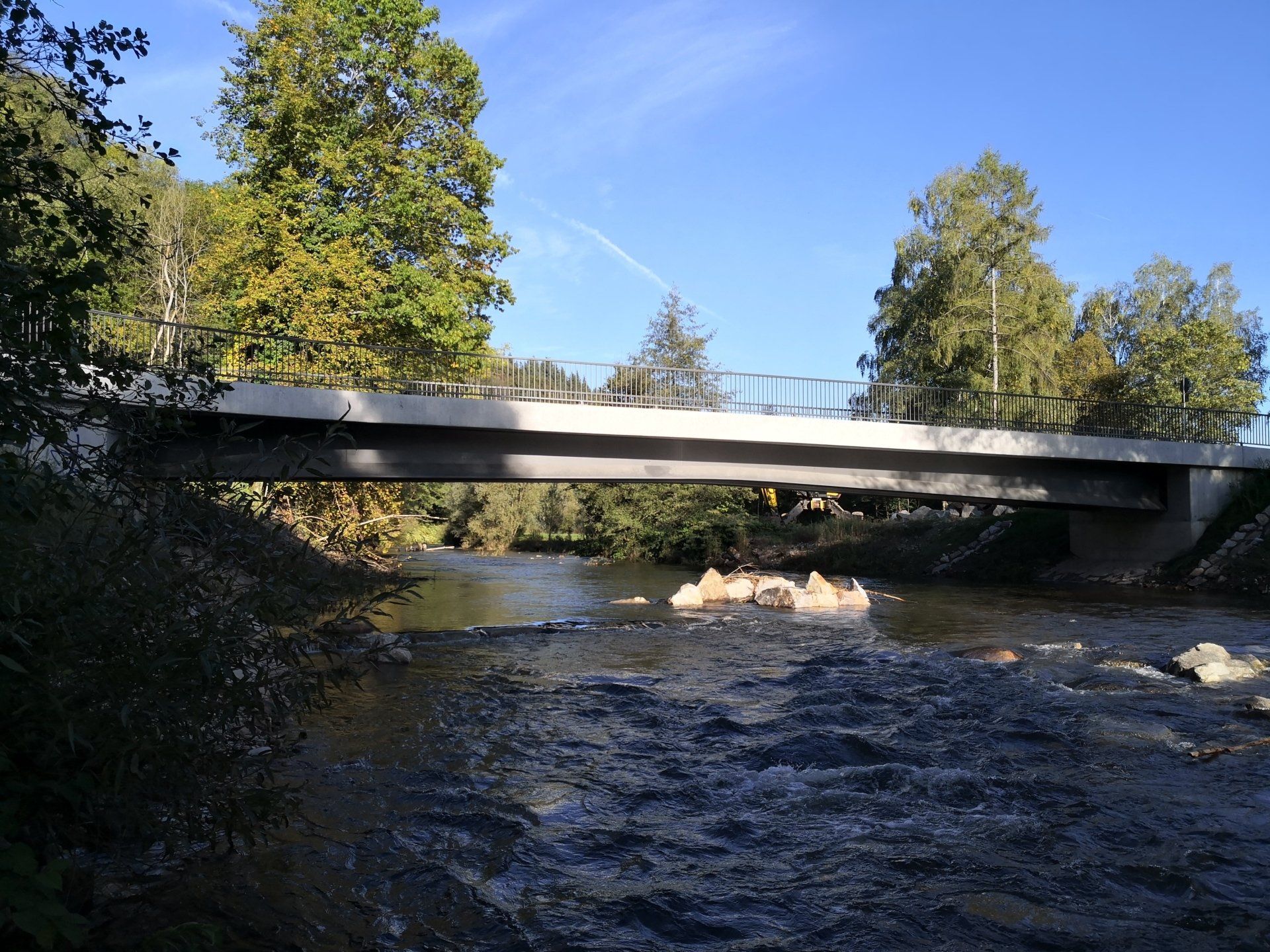 Einfeldrige Fuß- und Radwegbrücken aus Holz, Stahl und Beton bis zu durchlaufende Stahlbeton-Straßenbrücken gehören zu den von uns entworfenen und berechneten Überführungsbauwerken.