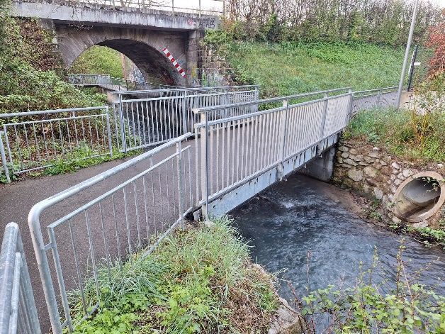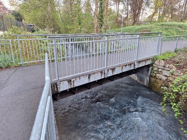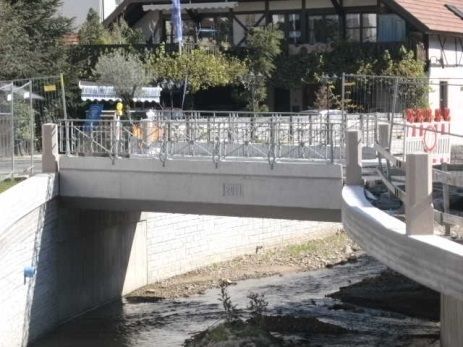 Unser Büro führte für die neue Brücke über die Wiese in Maulburg die Objektplanung, die Tragwerksplanung, die Ausschreibung und die Bauleitung durch.