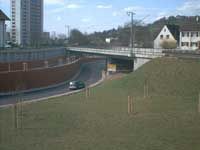 Durch die Einspannung des Überbaus in die Widerlager werden sowohl Zug- als auch Druckkräfte in den Baugrund eingeleitet. Diese Kräfte werden mit Hilfe von Microbohrpfählen, auf der Nordseite der Wiese in den Sandsteinfels- und auf der Südseite der Wiese in die Wieseschotter, eingetragen.
